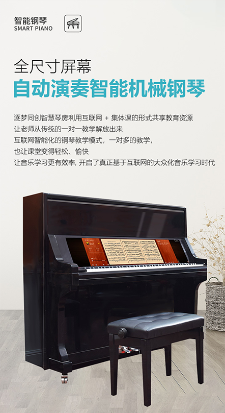 加装自动演奏系统的传统声学钢琴,88键立式或卧式,含琴凳(可调节高度)、琴罩