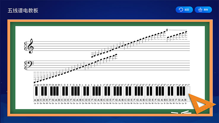 在集体课教学的时候,老师可以一键控制所有学生钢琴的静音(数码钢琴支持),完全实时同步发送曲谱到学生钢琴,支持多音色的控制,可以实现合奏的教学 效果。课件内容也有多达20种的趣味性练习环节。